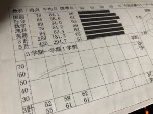 (中学3年のときの成績表)